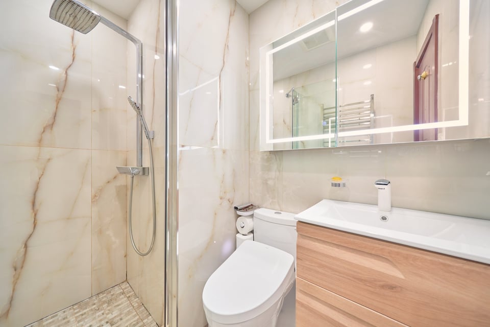 The residence features custom closets throughout, solid 3/4 hardwood floors, and efficient mini-split A/C systems in every room for personalized climate control. The living room flows seamlessly onto one of two private balconies, while the primary suite offers its own bathroom and a second balcony, creating the perfect private retreat. Each room of the home receives amazing natural sunlight, making the space feel bright and airy throughout the day.